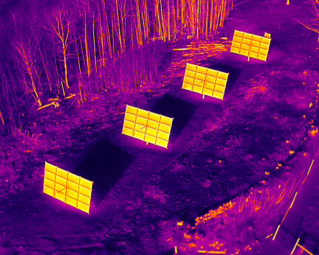 Identify hot spots, string failures and inverter issues with customized aerial imaging in simultaneous RGB and Thermal/IR. From residential rooftop arrays to large commercial and municipal PV systems, we provide deliverables in a variety of thermal color palettes.